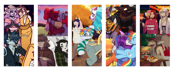 Complexity is based on whether or not it takes me longer than usual to draw. I'll tell you if the commission is complex by my standards.Major and multiple revisions that make the art process longer may also add to the cost. Minor revisions and revisions made during the sketch stage are free.I send at least three work-in-progress shots when working on rendered pieces: the sketch, the base colors, and a screenshot of the final rendered image. Please take care to give me comments and notes as needed in the sketch and coloring stages to avoid major revisions in the rendering stage.